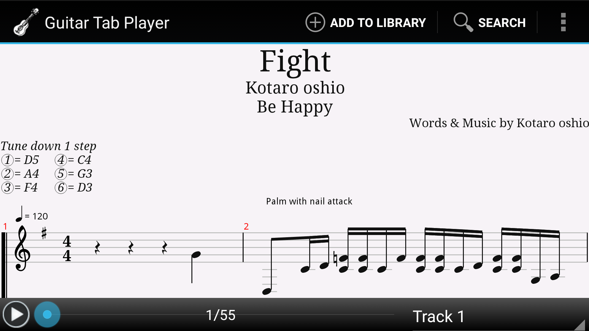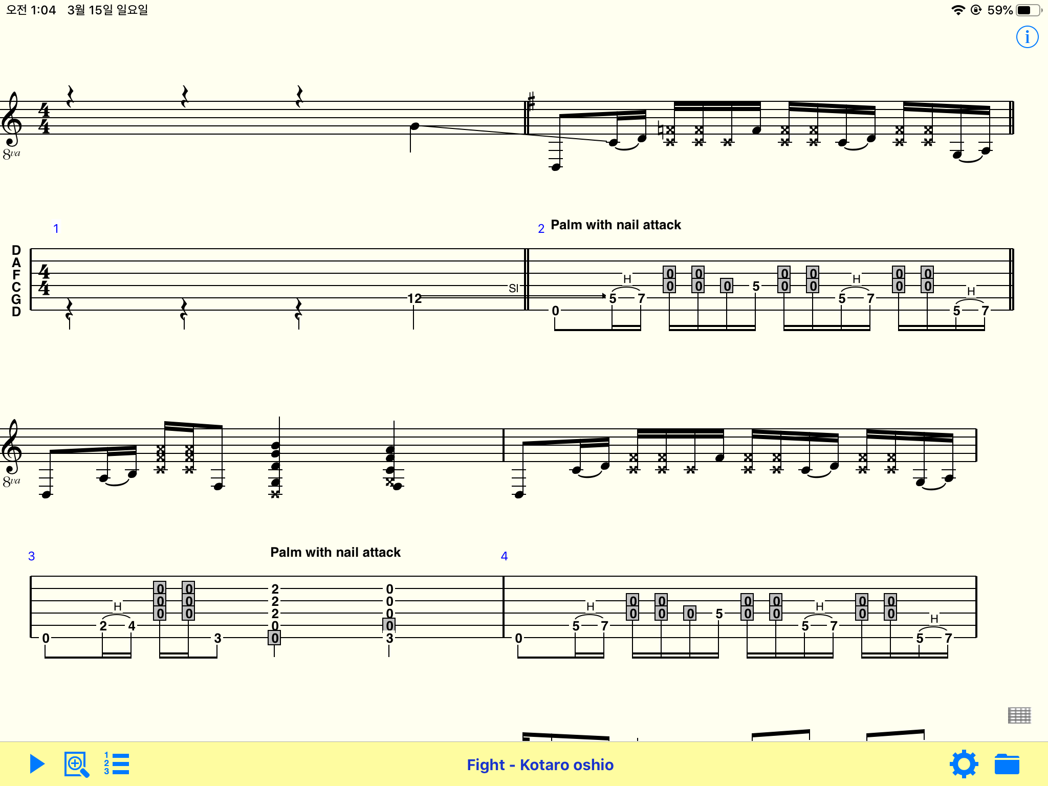 참고) 이 포스팅에 사용된 코타로 오시오 Fight gp5 파일은 네이버 핑거스타일 카페 "호야"님께서 올려주신 파일입니다. 출처: https://cafe.naver.com/fingerstyle/46087