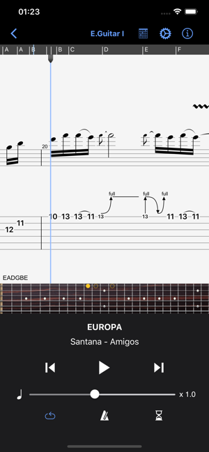 TEFview for iOS is an app that allows you to view, print and play tablatures created in TablEdit Tablature Editor on your iPad, iPhone or iPod touch. TEFview allows you as well to view and listen to ASCII tabs, ABC tunes, MIDI, PowerTab, GuitarPro and mus