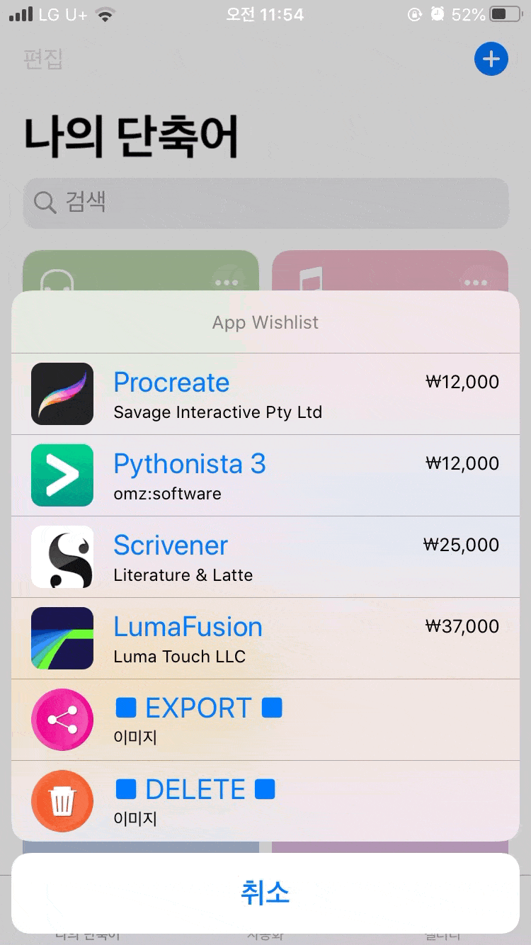 이렇게 해서 App Wishlist 단축어의 대략적인 설명이 끝났습니다.