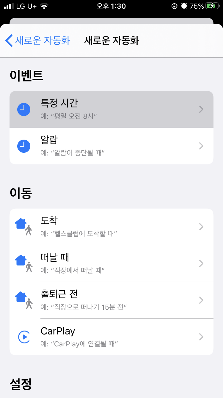 2. 단축어가 실행될 조건을 설정하는 메뉴입니다. 특정 시간을 눌러 매일 어떤 시간에 App Wishlist 단축어가 실행되도록 해봅시다. 알람을 선택한다음 일어날 때 알람을 지정하셔도 좋습니다.