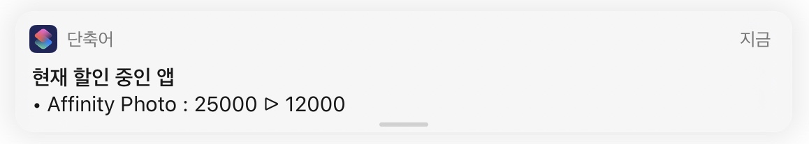 그러면 매일 특정 시간에 App Wishlist 단축어가 조용히 실행되면서 가격 할인 중인 앱이 있을 경우 알림을 띄워줄 것입니다.