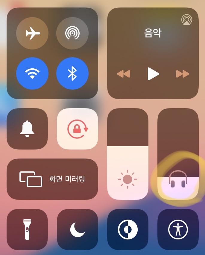 이렇게 제어센터에 이어폰 모양이 나와야 합니다.