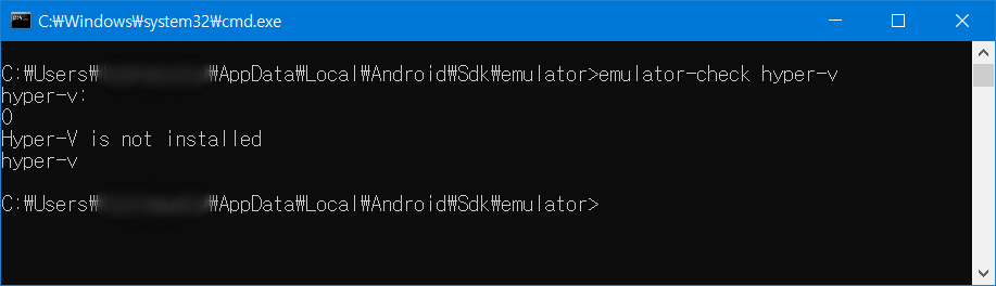(SDK 설치 위치)\emulator 폴더 안의 emulator-check.exe를 통해 hyper-v 여부를 확인해볼 수 있다.