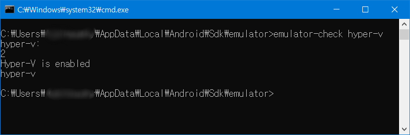 안드로이드 SDK 안에는 emulator-check 라는 툴이 있어서 hyper-v 여부를 확인할 수 있다고 한다.