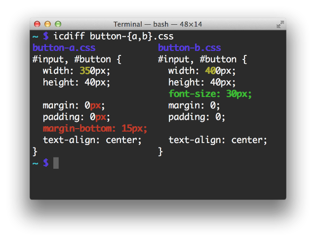 아래 스크린샷은 icdiff 홈페이지에서 가져온 스크린샷입니다.