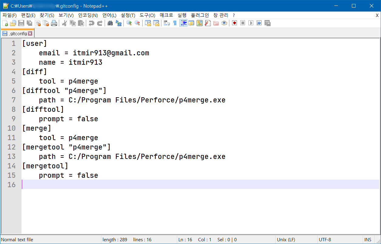 마지막으로 p4merge를 git에서 사용할 수 있도록 config을 등록해줘야 합니다.