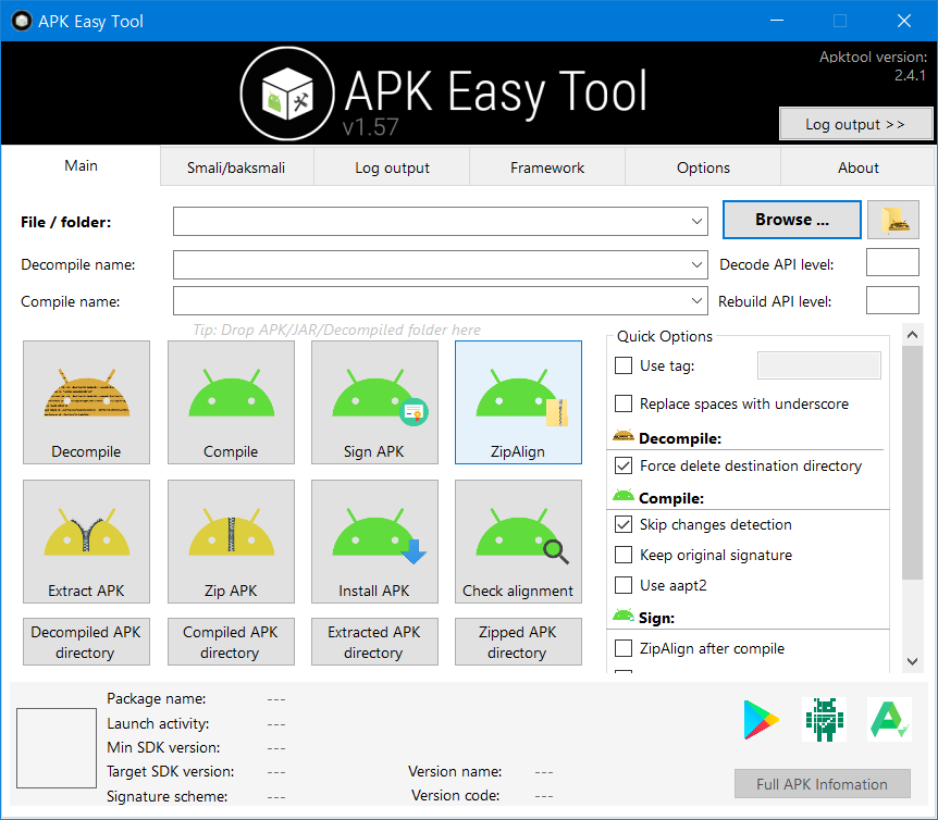 - Java SE/JDK for decompile, compile, and sign APK. If you don't have Java installed, you can only use Zipalign or Install APK. Download and install Java SE/JDK now