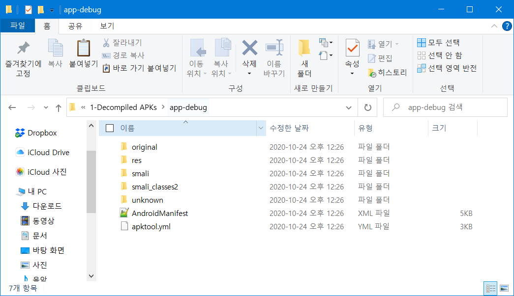 필자는 과거에 만들었던 학교앱 프로젝트를 APk Easy Tool로 디컴파일 해보았다.