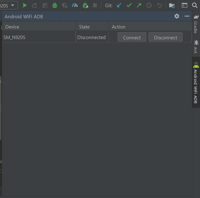IntelliJ를 재시작하면 다음과 같은 탭이 생긴다. 만약 탭이 보이지 않는다면, View - Tool Windows - Android WiFi ADB를 클릭하면 된다.