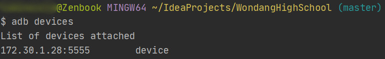 adb devices를 해보면 이렇게 평소와는 달리 스마트폰의 내부 ip주소가 표시된다.