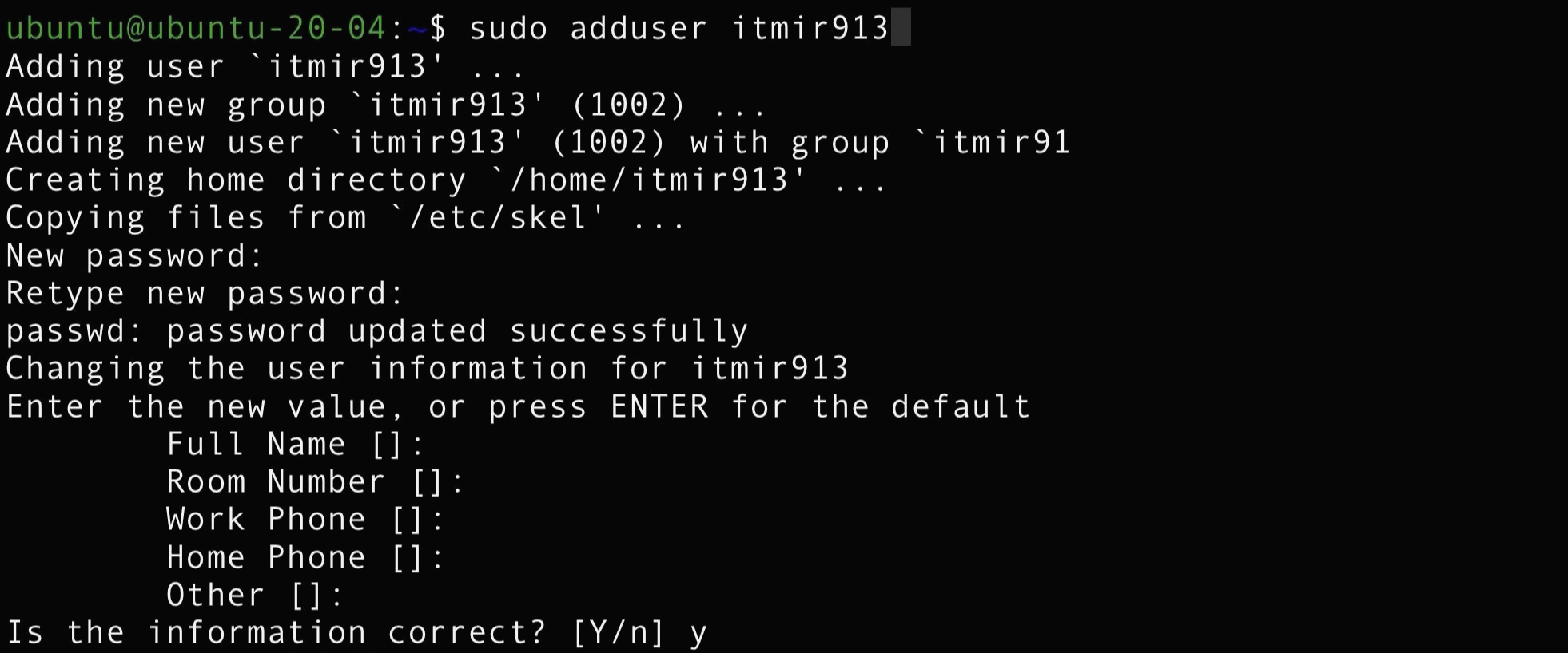 $ sudo adduser itmir913