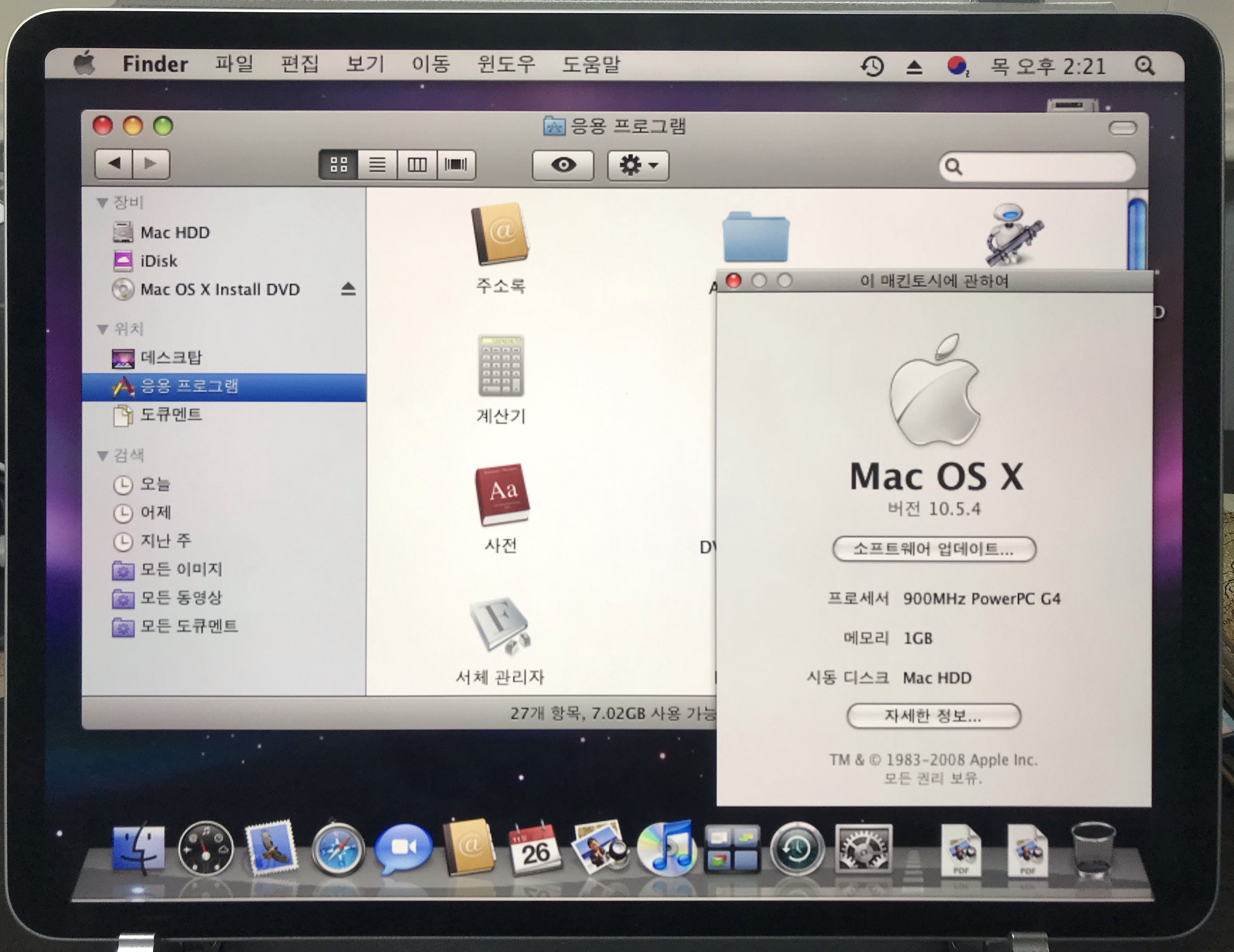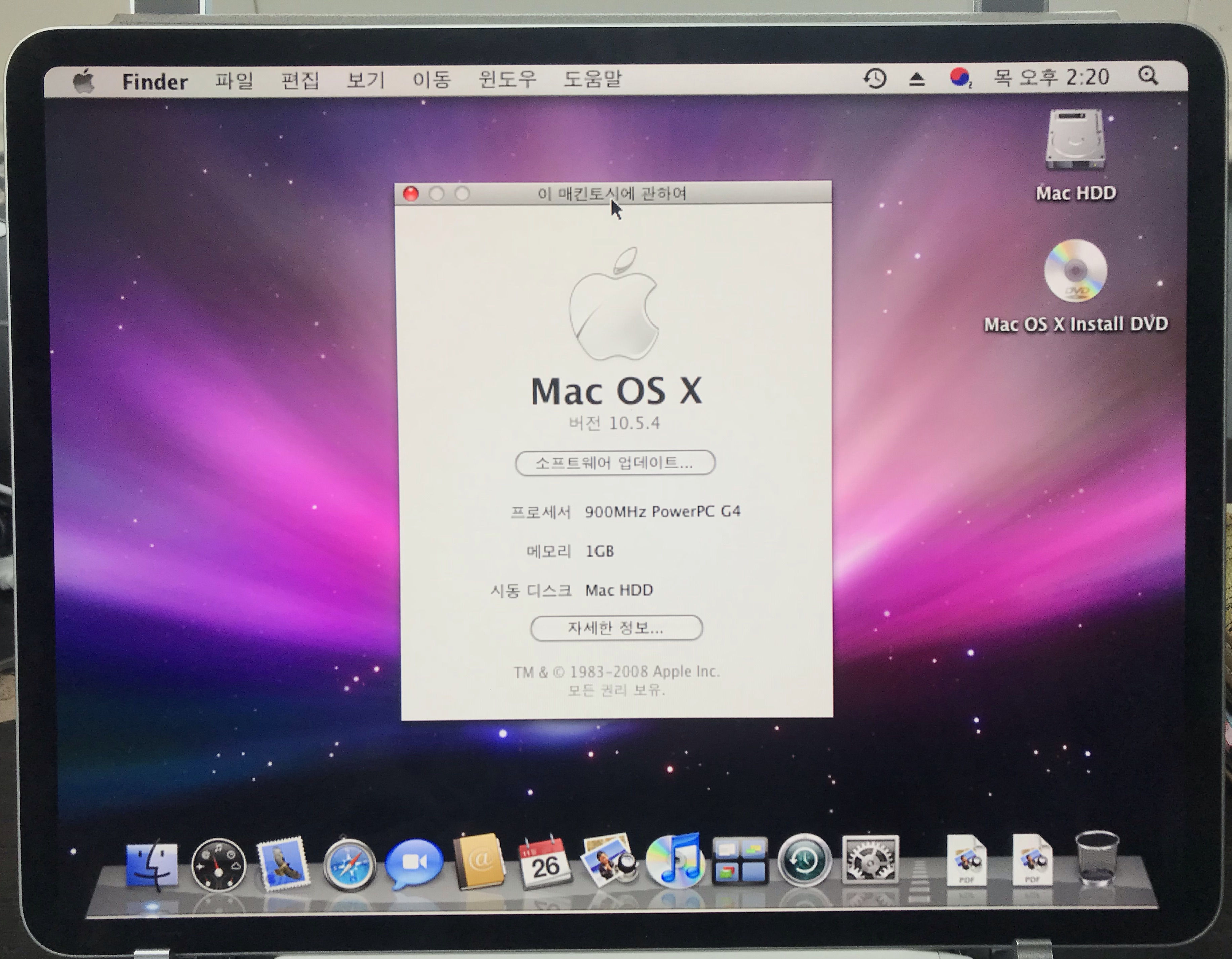 참고로 필자가 선택한 Mac OS 버전은 Mac OS X 10.5.4 Leopard 버전이다.