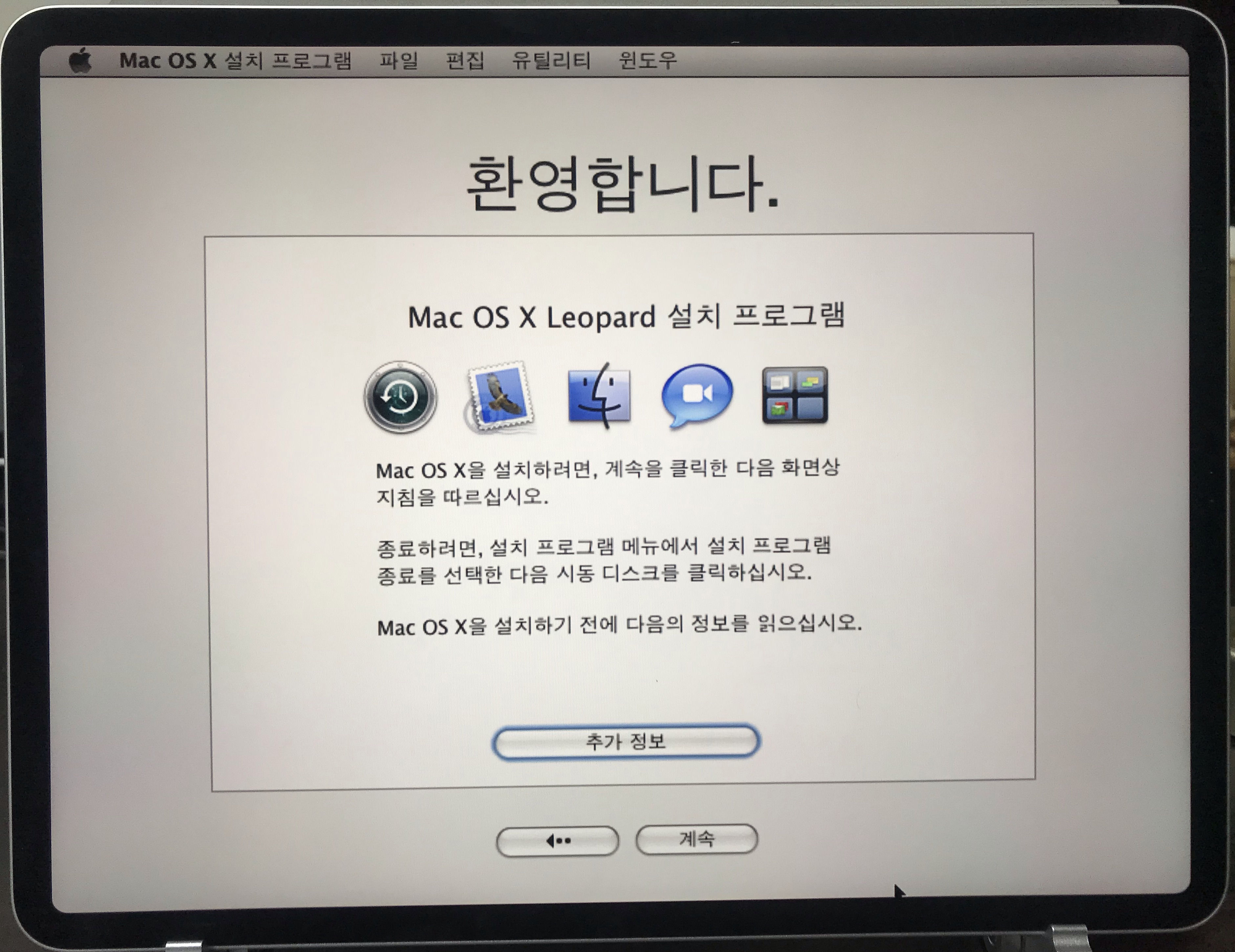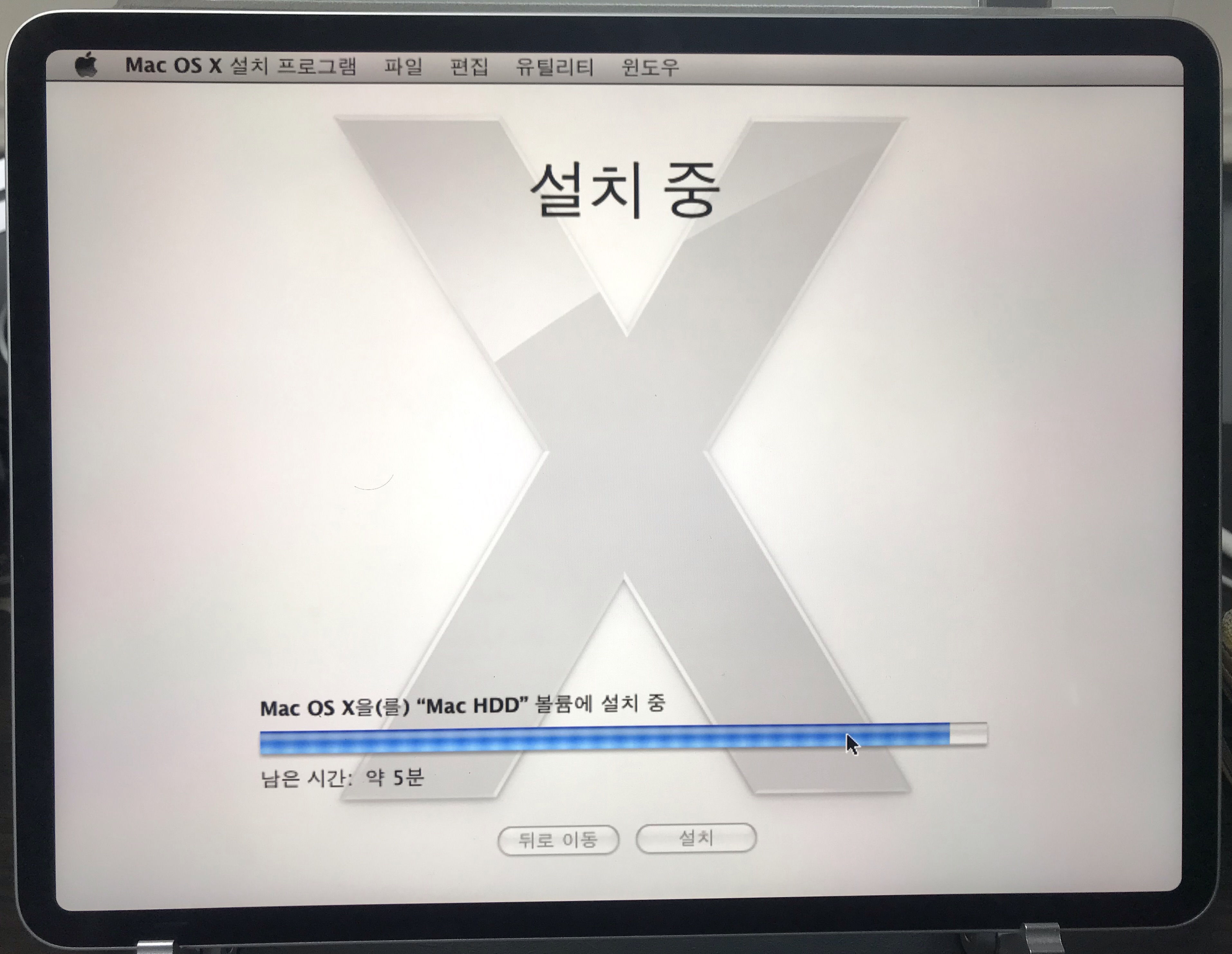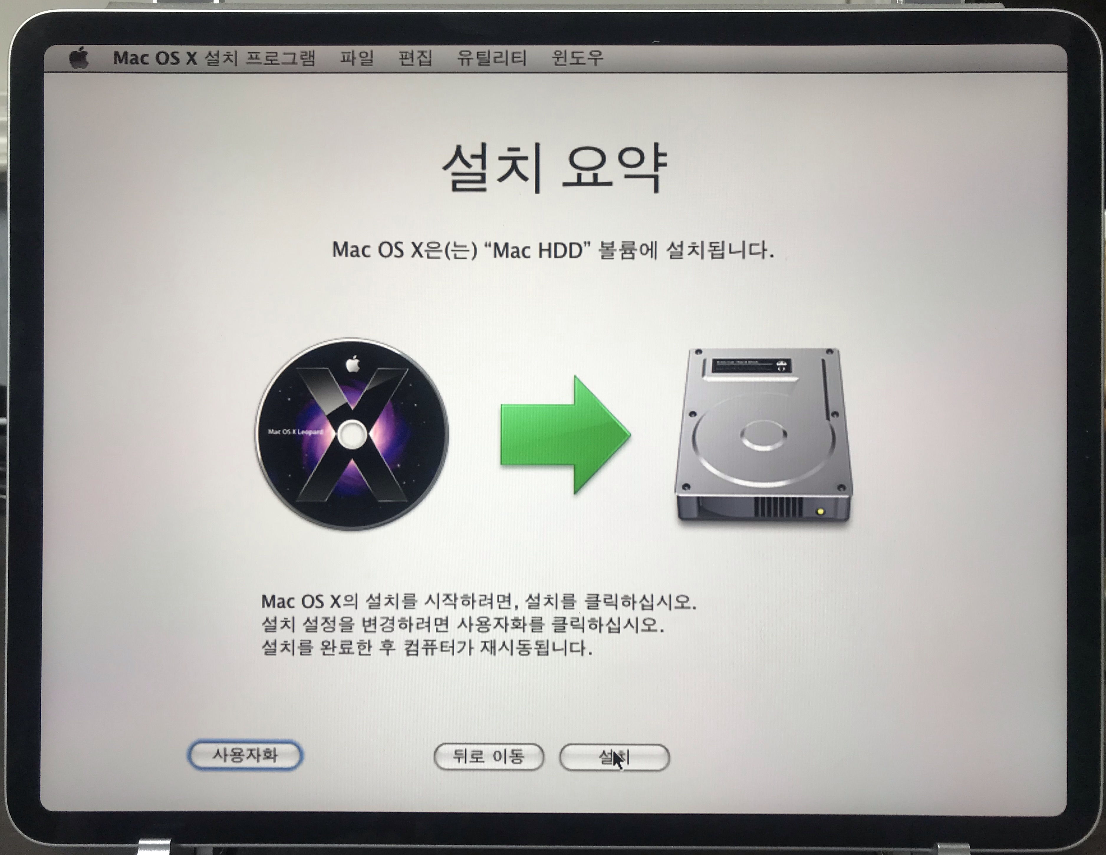 맥을 한 번도 접해본 적이 없어서 필자는 이 설치 화면도 낯설지만, 누군가에게는 이 화면이 추억의 화면일 것 같다.