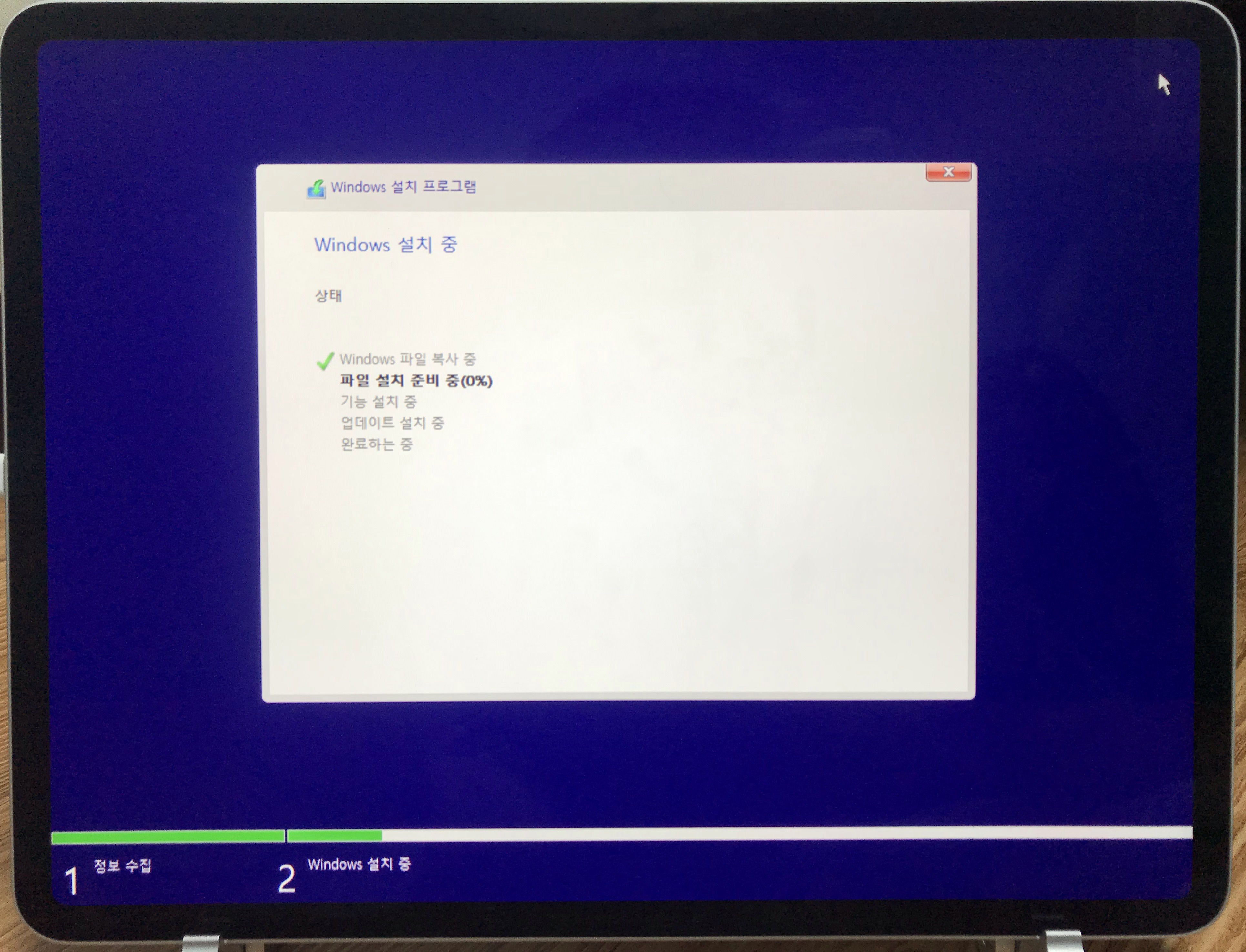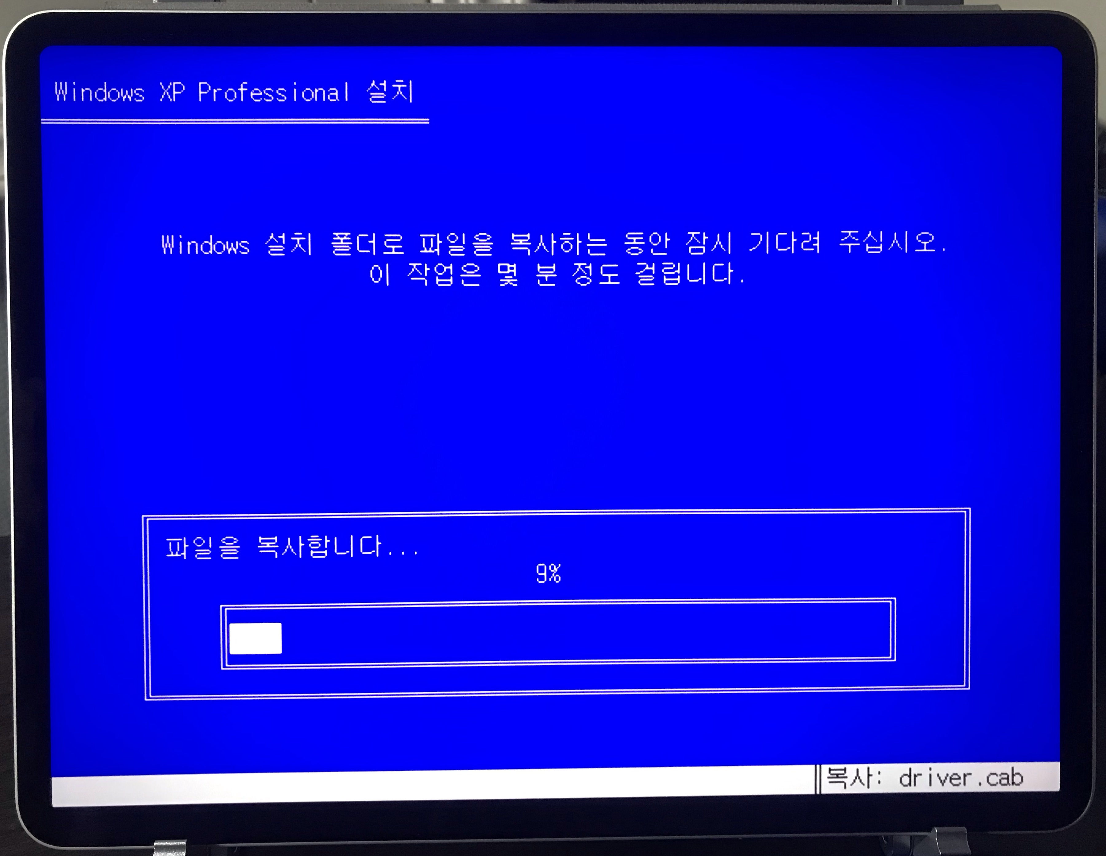 간단한 설치 정보 수집이 끝나면, 바로 윈도우 파일 복사가 시작된다.
