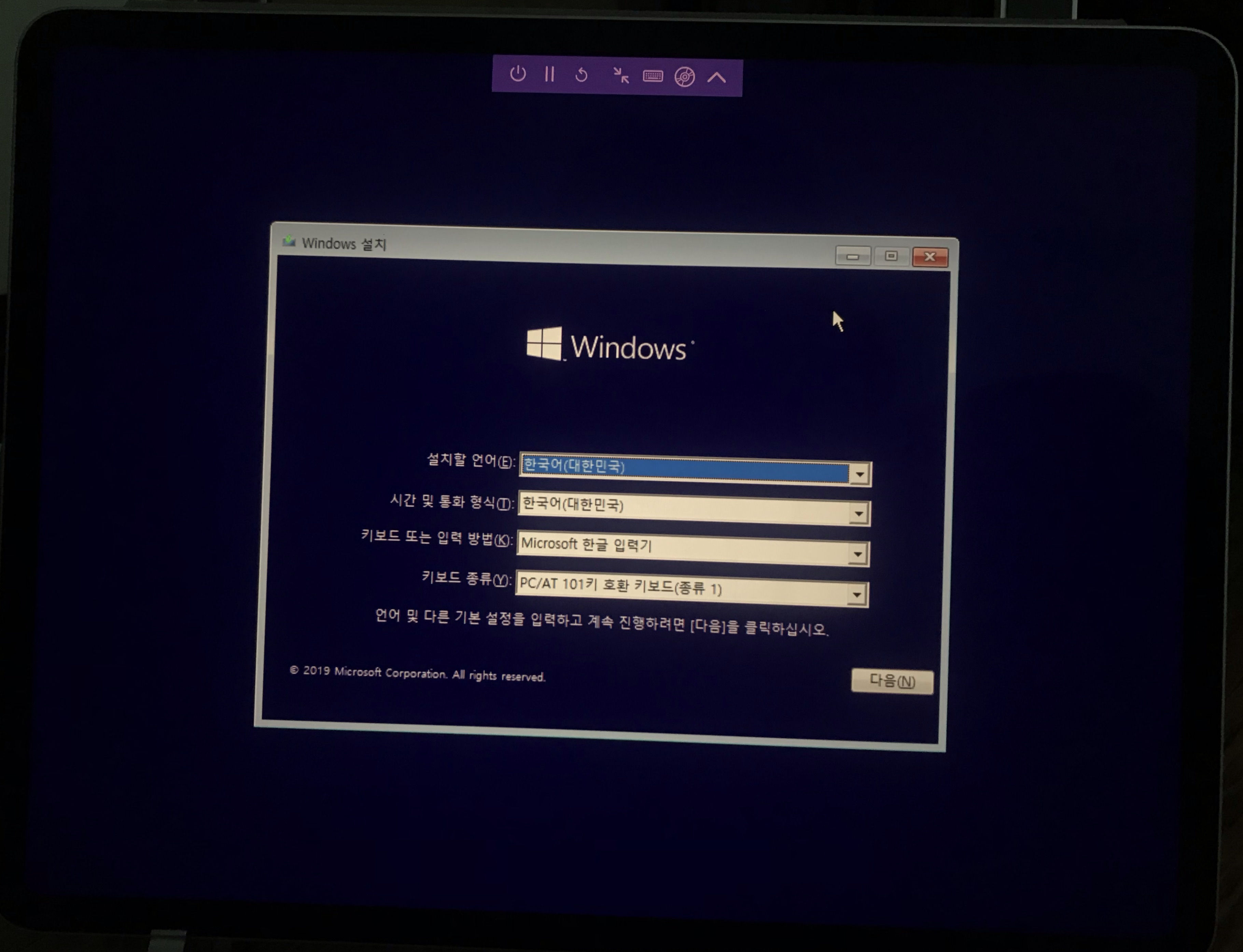 이제 오히려 익숙해진 윈도우 10 설치 화면이다.