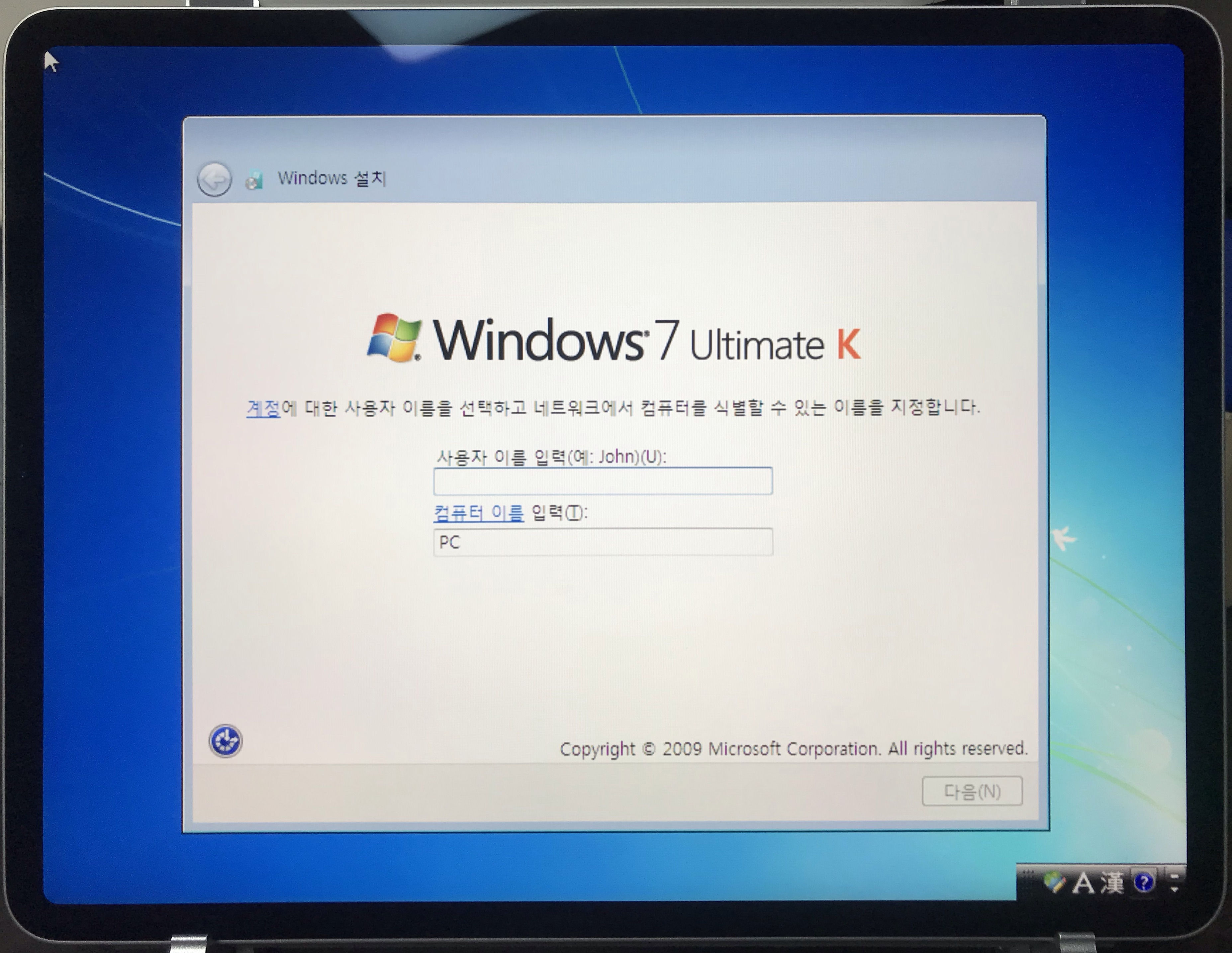 그러면 조금은 익숙한 윈도우 7 부팅 화면이 뜨며, 곧 이어 배경화면과 함께 윈도우 7 설치가 완료된다.