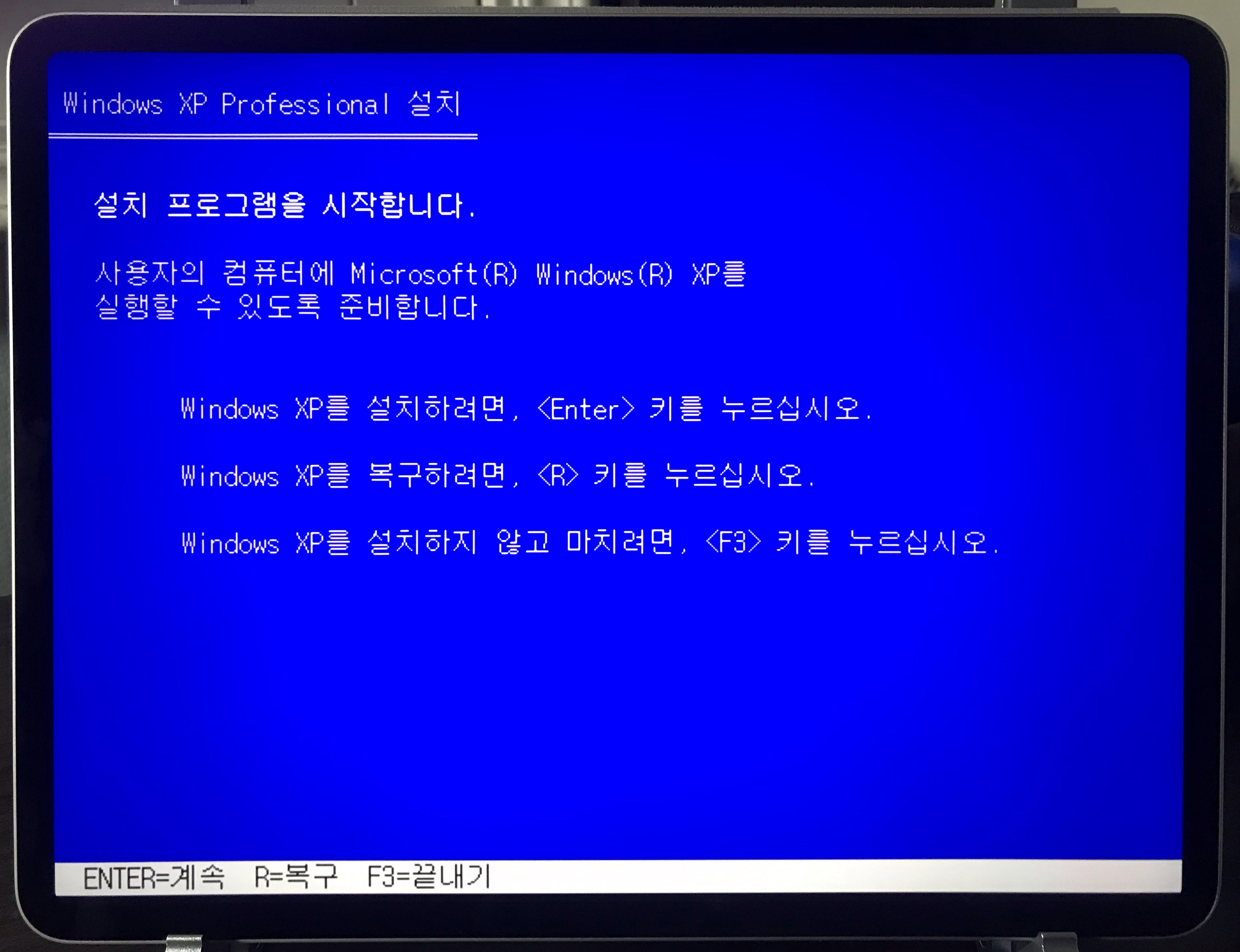 정말 오랜만에 보는 파란 화면이다. 필자는 이 화면을 안 본지 대략 십 년 이상 된 듯 싶다.