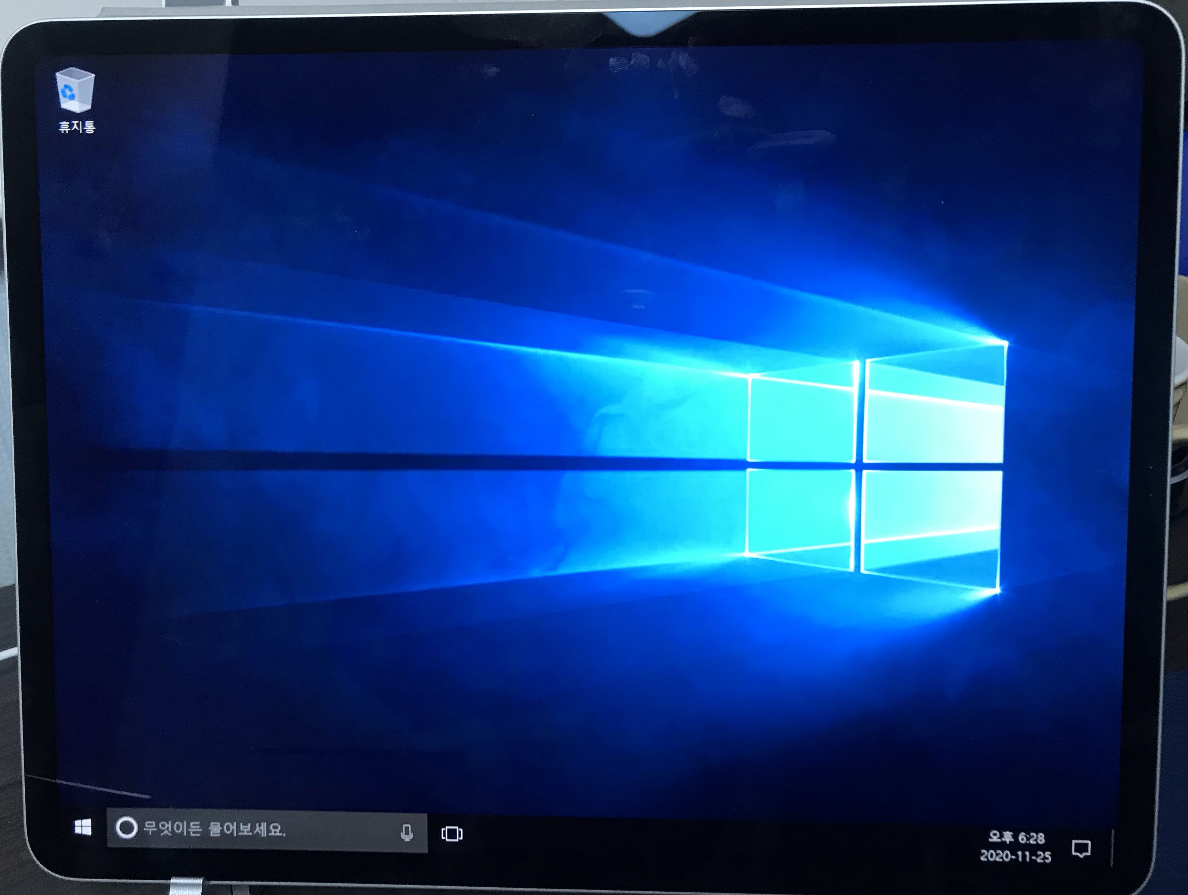이제 드디어 윈도우 10 배경화면이 나타났다.